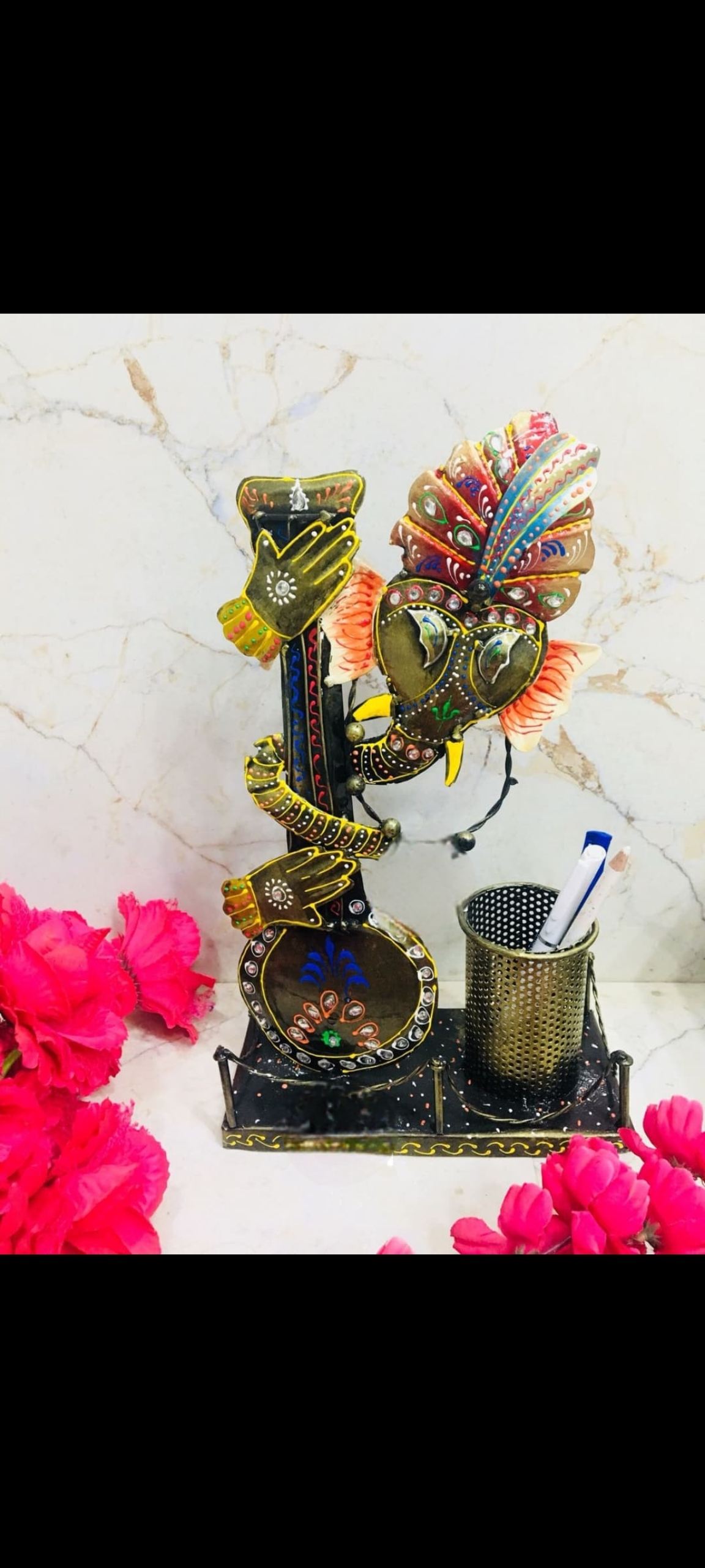 • Musical Ganesha Theme: The stand features an artistically rendered Lord Ganesha playing a traditional stringed instrument (Veena/Sitar), symbolizing the harmony of wisdom and the arts.