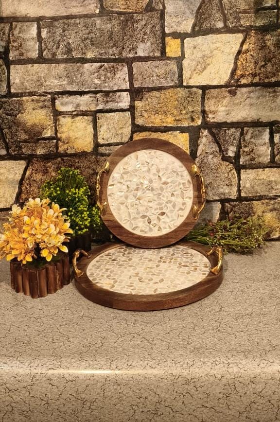 Exquisite Floral Inlay: The center of each tray is adorned with a delicate floral vine motif, meticulously handcrafted using genuine shimmering Mother of Pearl slivers.